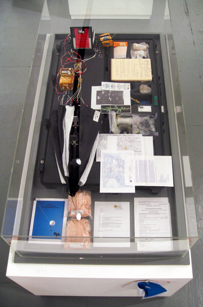 BPL-001 Mission (Conrad Carpenter Funeral), 2007, waterproof case with objects comprising near space vehicle, aluminum, nylon, polycarbonate, dacron, mylar, electronics, steel, brass, paper, urethane, 6 x 53 x 16 inches (15 x 135 x 40.5 cm)